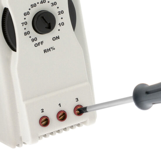 Hygrostat ควบคุมความชื้นให้เหมาะสมกับการทำงานของอุปกรณ์ภายในตู้คอนโทรลได้มากที่สุดด้วยการทำงานร่วมกัน กับ แอร์คอนดิชั่นเนอร์ หรือ ฮีตเตอร์